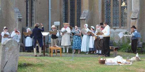 The summer garden concert with the Chiltern West Gallery Quire exceeded all expectations. On a lovely summer, evening the Quire transported us back to 18th and 19th century Meldreth, as they played, sang and talked about village life and music in the community. Many people have said how much they enjoyed the evening and commented on just how much work the Quire had put into their preparation, to make their performance so Meldreth-relevant. The Quire so obviously enjoyed it all themselves. Having the Meldreth Quire Book, which had belonged to churchwarden Benjamin Hale, available on display was a real bonus.