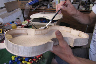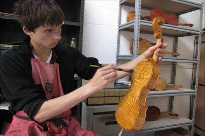 Chris Beament gave an enthusiastic talk accompanied by many excellent slides. His mother Juliet Barker studied for 2 years at the Mittenwald "school" of violin making, the home of the Klotz family dating from mid-17th century. She set up making violins in Cambridge in 1956. The skill required is amazing as much of what is seen is hand crafted with little room for error. Chris explained that most of the old and famous Baroque style violins were converted to the Modern style by strengthening the neck fixing arrangement to the body to allow higher string tensions and enabling violins to be heard above brass instruments. Chris touched on the subject of repair techniques and has offered to give another talk in the future on this highly specialised subject.