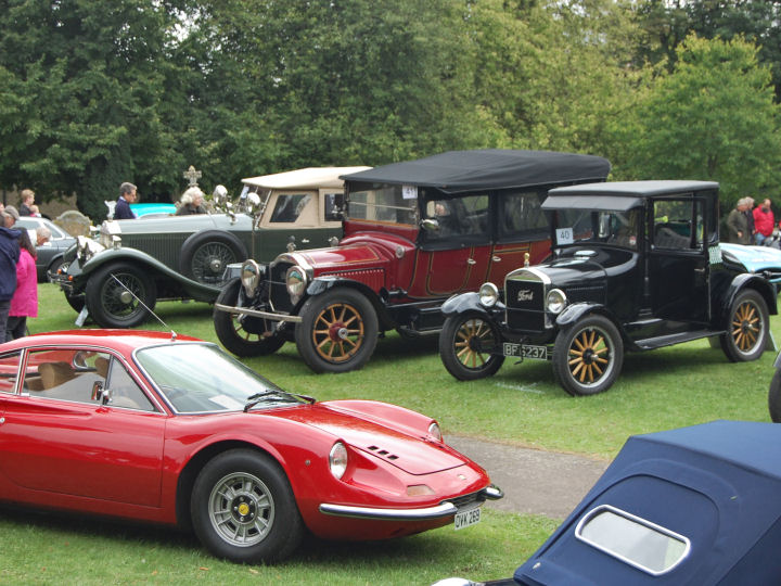 Front: Ferrari Dino 246 (1971) Rear: Rolls Royce Phanton I (1927), Packard Twin-6 (1916), Ford Model T (1926)