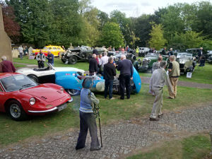 The 12th annual Car Show was held on a dry but windy day. The exhibits filled the churchyard including 47 cars dating from 1924 to 1989 i.e. Vintage pre and post war, classic with a strong sporting influence which can be seen with the Ferrari Dino, Lotus 11, and Austin Healey in the foreground. There were 11 motorbikes including a sprint / hill climb special combination with a minimal 'sidecar' for the passenger and finally two old pedal bikes.
