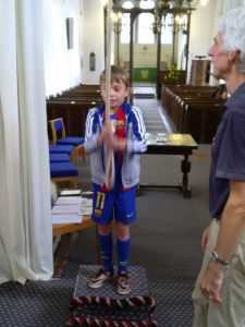 There was an opportunity to trying bell ringing with a CCTV image from the bell chamber and computerised sound; this was tried by a number of the younger visitors. In the South Aisle there was a display of paintings by two local artists together with some super ink sketches of cars by a young graphic artist. To round off the afternoon tea and cakes were served in the Meeting Room while the Memphis Jazz Band played music of the period in the churchyard.
