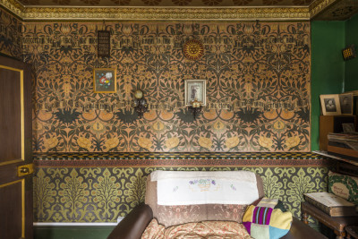 The intricacy and uniformity of the hand-painted decorative patterns is impressive and the technique of 'pouncing' was frequently used. With this, a decorative profile is drawn on paper and a series of small holes pierced around the profile. The profile is then held in position on a wall or ceiling and charcoal rubbed over the holes and repeatedly used to create a series of outlines for hand painting. It may sound simple but requires incredible painting skills.